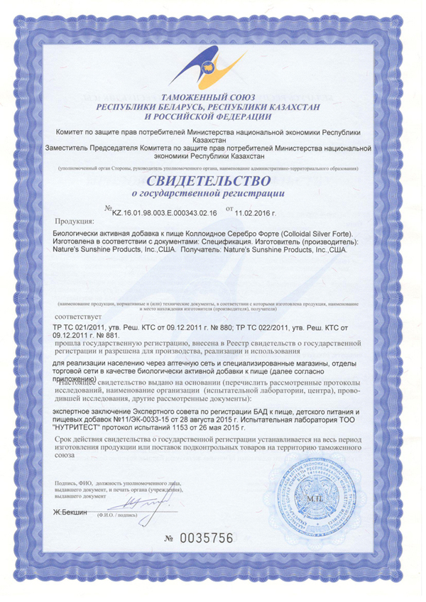 Рекомендуется в качестве БАД к пище – источника серебра.