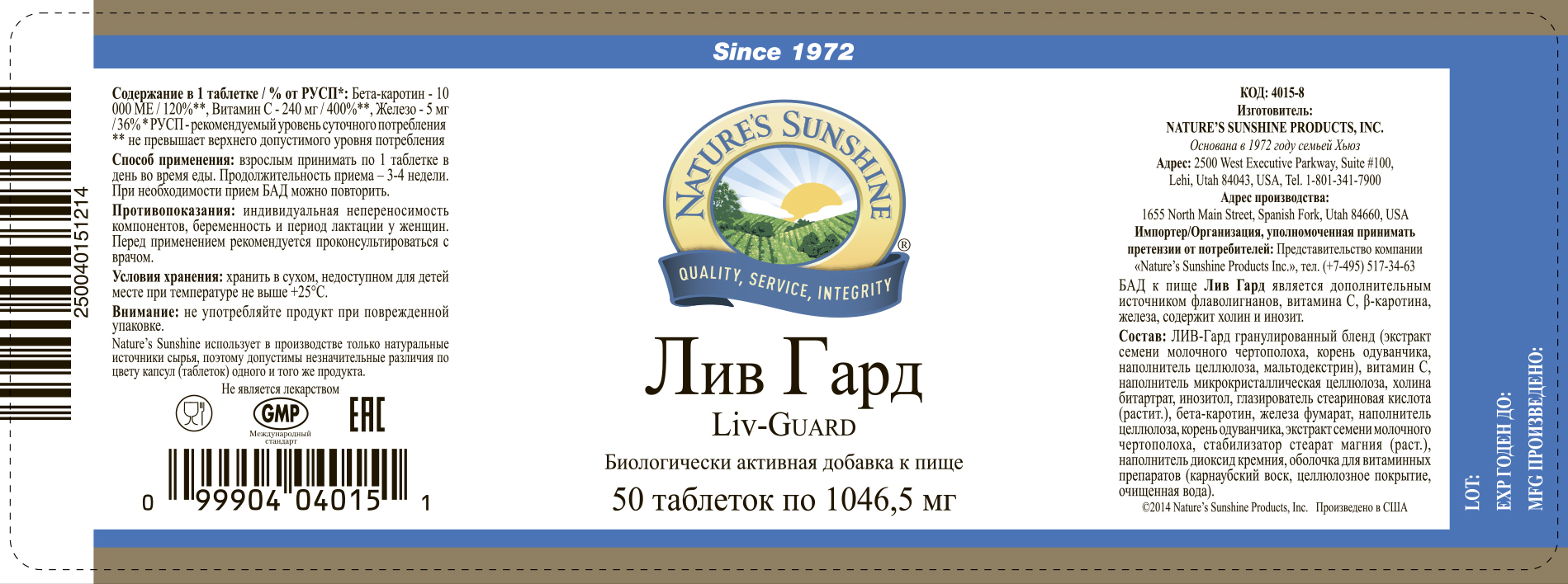 БАД к пище Лив Гард является дополнительным источником флаволигнанов, витамина С, бета-каротина, железа, содержит холин, инозит.