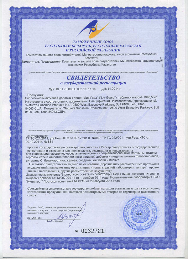 Лив Гард является мощным средством для восстановления печени и поддержки ее работы. Лив Гард содержит: бета-каротин, витамин С, железо, холин и инозитол. В состав комплекса также входят экстракты расторопши и одуванчика.