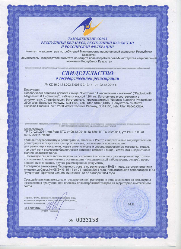 Пептовит с L-карнитином и магнием